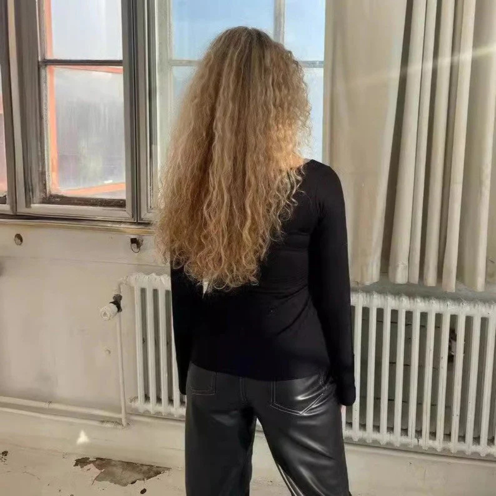 Les manches longues apportent non seulement une protection contre les températures plus fraîches, mais ajoutent également une touche classique à l’ensemble. La coupe fluide permet une liberté de mouvement tout en conservant un look moderne.